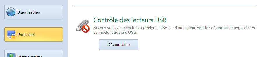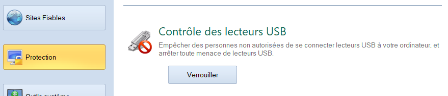 Dans le menu protection, cliquez sur verrouiller dans le champ de controle des lecteurs USB :