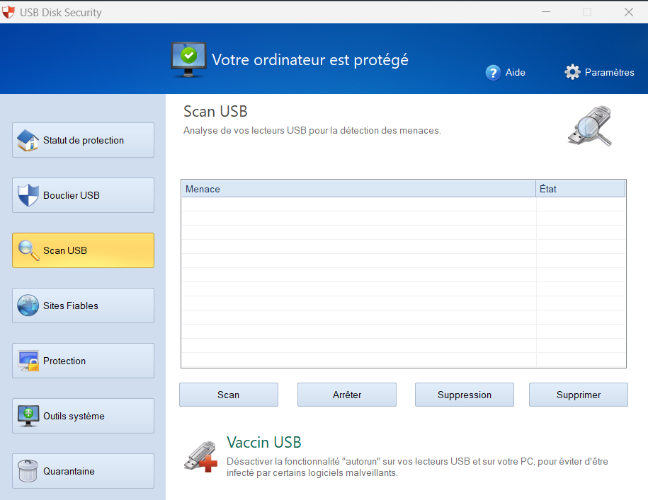 Vos clés USB ne remontent maintenant plus sur votre PC. Pour les autoriser, ouvrez l’utilitaire USB DIsk Security et effectuez la même démarche (avant de brancher une clé).